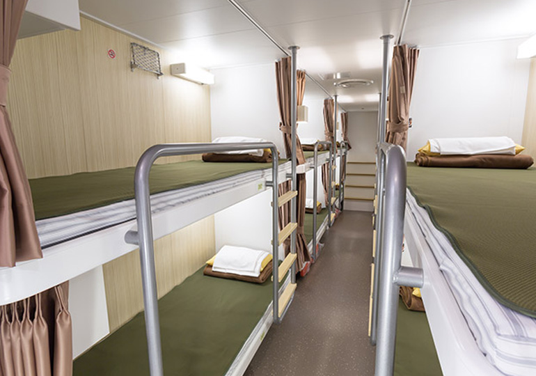 一番安い部屋です。定員4〜12名で、雑魚寝になります。顔につい立があるだけです。